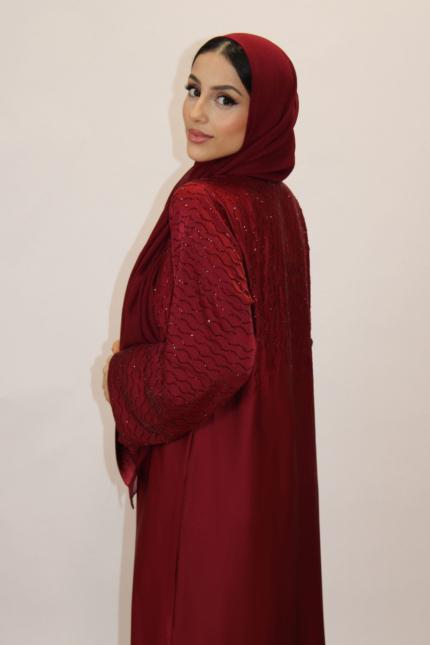 Elegante y fresca, esta abaya está confeccionada en tela coreana importada desde Dubai, ideal para el verano por su ligereza y suavidad. Con detalles sencillos de pedrería y pliegues delicados, incluye un forro de chiffon para proteger las piedras y mayor durabilidad. Disponible en 3 colores versátiles.
