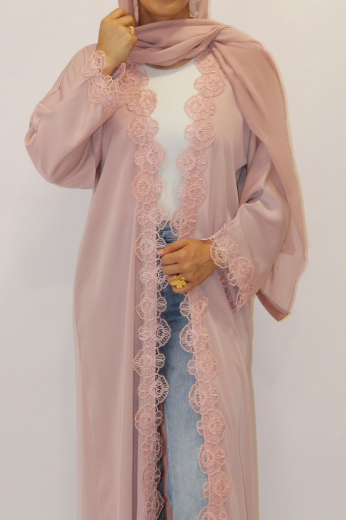 🌹 Abaya Kimono con Encaje de Rosas