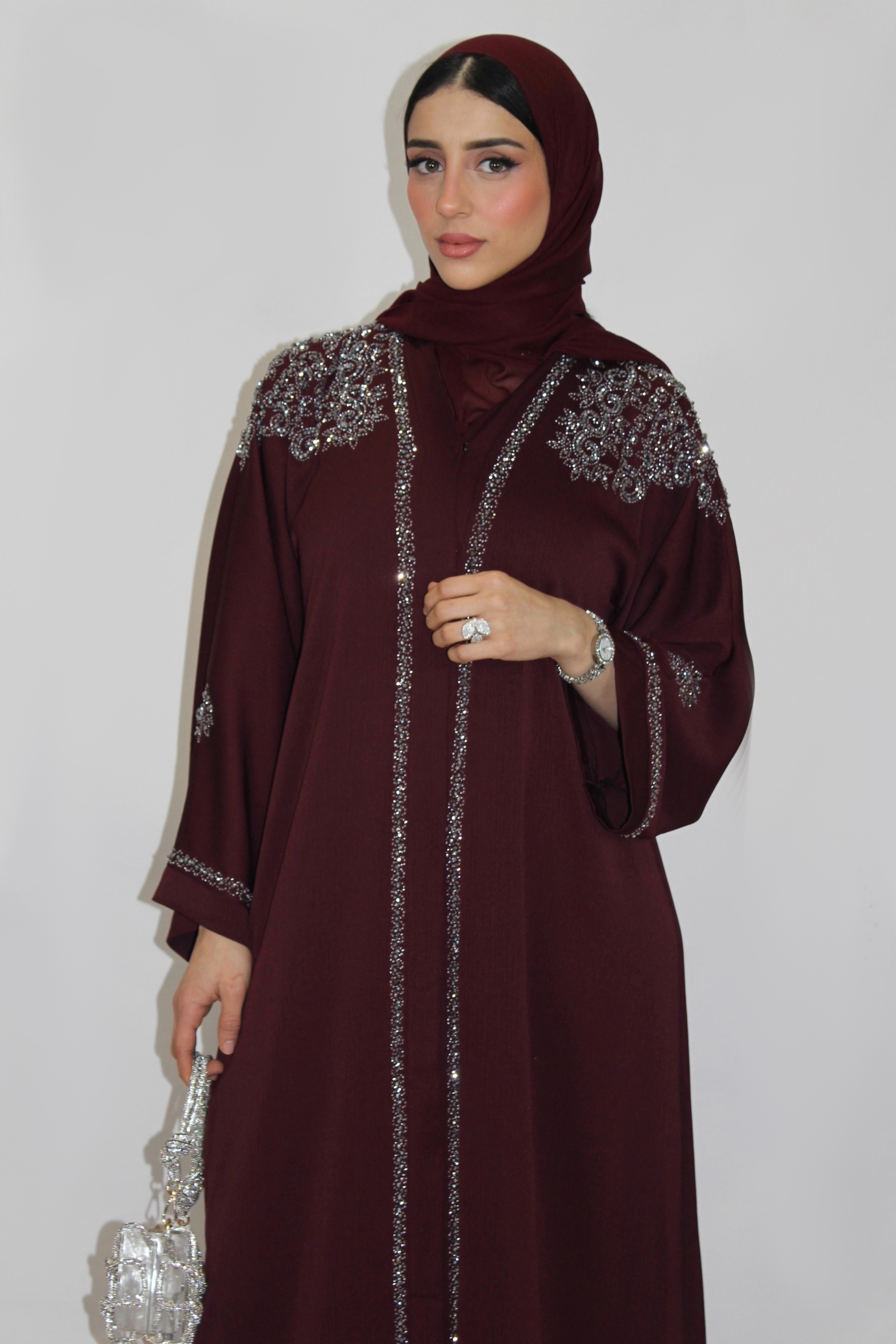 La Burdeos Rose Abaya representa la elegancia absoluta. Una pieza imprescindible para Ramadan, Eid, eventos o para elevar cualquier look diario.