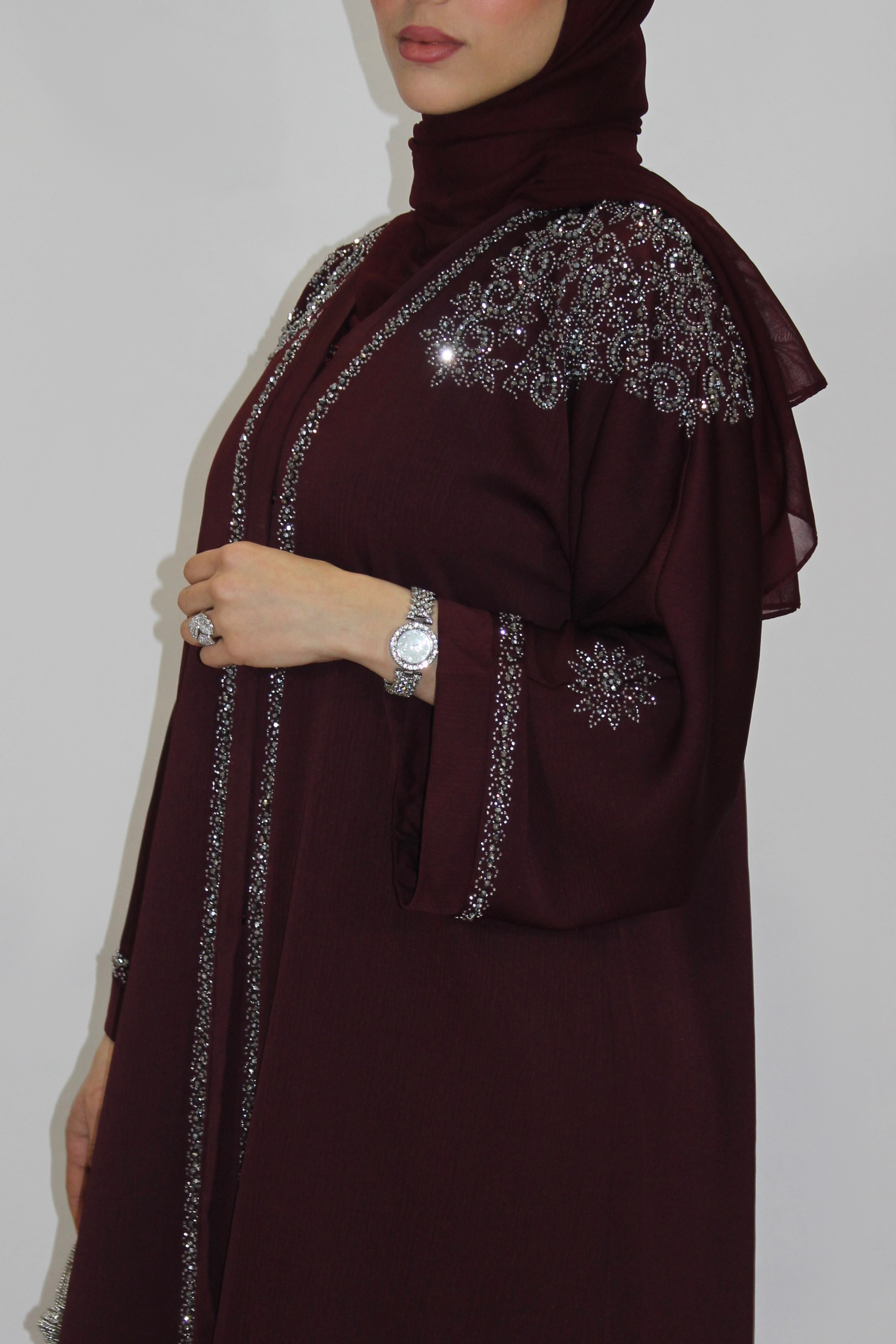 La Burdeos Rose Abaya representa la elegancia absoluta.